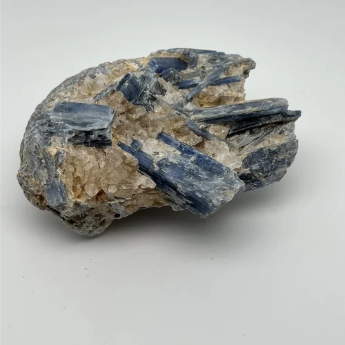 Кианит – это минерал с глубоким синим сиянием, напоминающий сапфир, но с уникальной двойной твёрдостью. Его красота и редкость делают его желанным для ювелиров и коллекционеров. Полосчатая структура и стеклянный блеск создают эффект «леденца», а плеохроизм меняет оттенок при разном освещении.